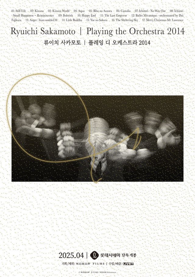 류이치 사카모토의 2주기를 맞아 스크린으로 찾아온 전설의 오케스트라 공연 실황 영화 ‘류이치 사카모토: 플레잉 디 오케스트라 2014’는 오는 4월 9일 전국 롯데시네마에서 개봉 예정이다.