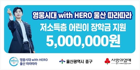 임영웅 팬클럽 '영웅시대 With Hero 울산 따라따라'는 지난 14일 가수의 '미스터트롯' 진(眞) 5주년을 기념해 울산 중구청을 통해 장학금으로 500만 원을 기부했다고 밝혔다.