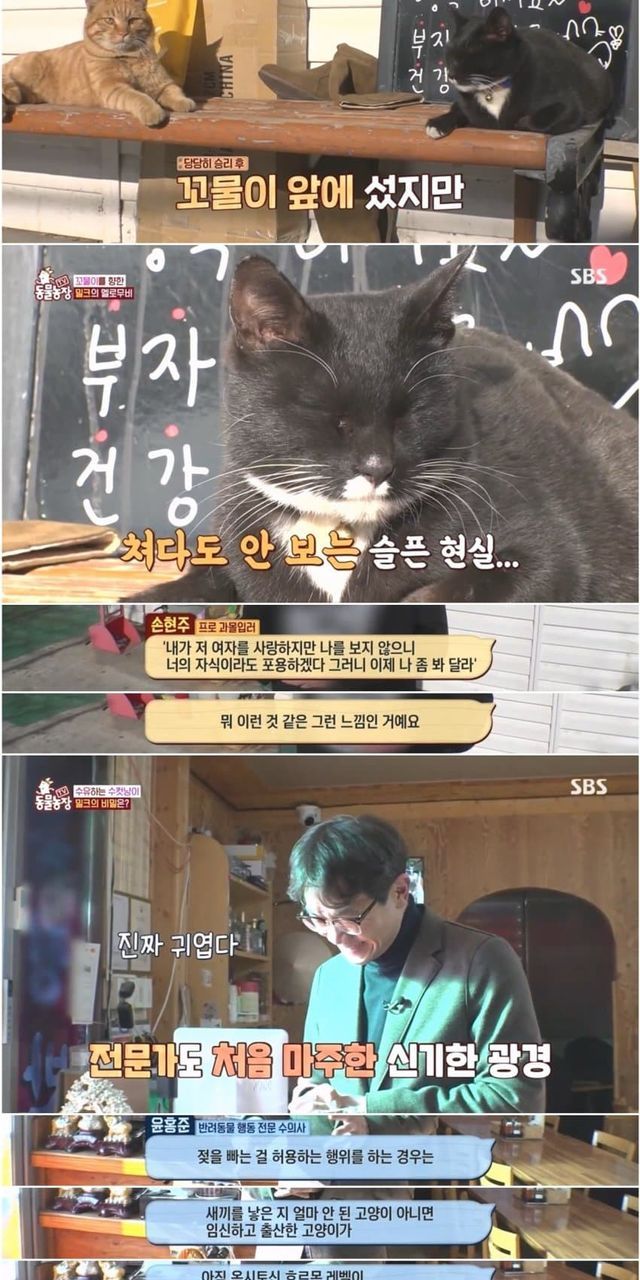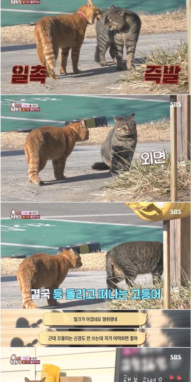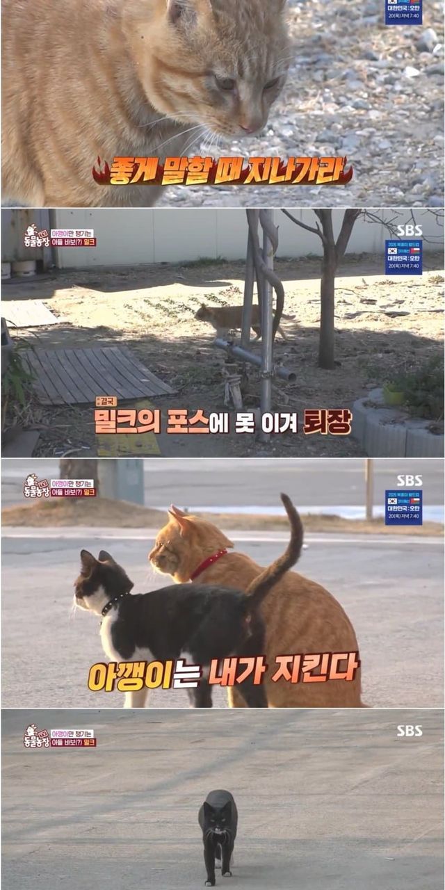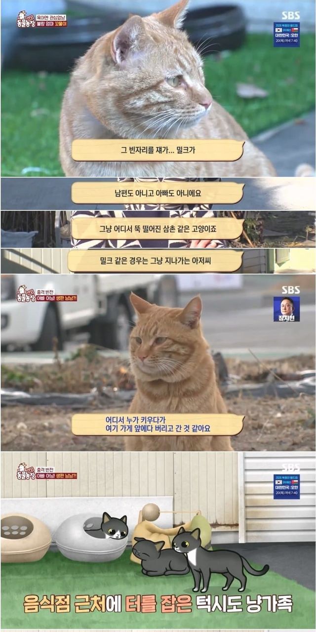 자기 자식도 아닌데 새끼 고양이 젖 먹이는 수컷 고양이