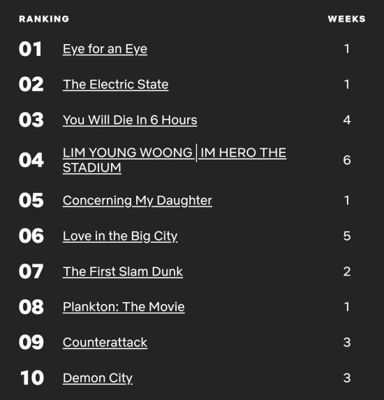 (엑스포츠뉴스 이정범 기자) 임영웅의 영화가 넷플릭스에서 주간 4위를 기록했다.