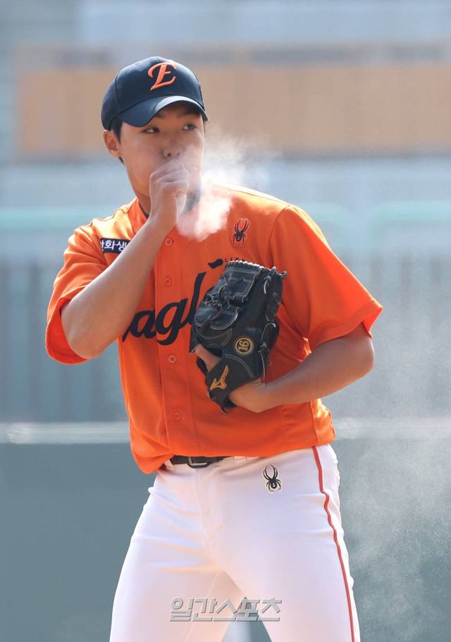 10일 오후 인천SSG랜더스필드에서 열린 2025 KB0리그 SSG랜더스와 한화이글스의 프로야구 시범경기에서 5회말 구원등판한 정우주가 투구 준비를 하고 있다. 인천=김민규 기자 mgkim1@edaily.co.kr /2025.03.10/