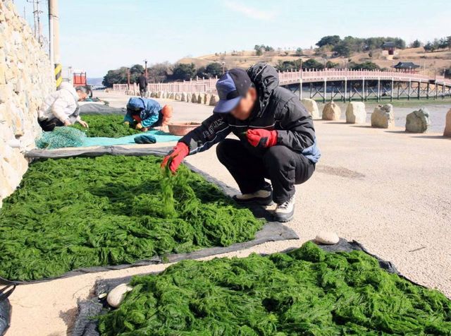 감태 말리는 어민. / 연합뉴스