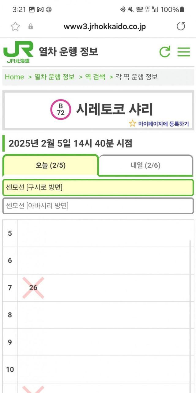 폭설의 영향으로 도동의 수많은 jr이 멈춘 와중에, jr홋카이도 운휴 공지에 시레토코샤리역 기준 구시로행 막차, 아바시리행 막차가 보이지 않았다.
