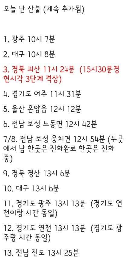 전에도 이렇게 동시에 산불난적이 있었는지...