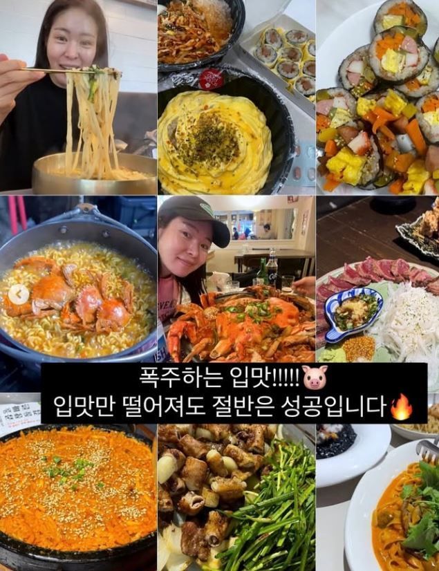 그는 방송 녹화를 앞두고 있었는지 "오늘 대기실에서 가늘어진 팔과 몸", "가벼우니 행복하구먼", "옷이 너무 커서 옷핀 10개 꼽음"이라고 전했다.