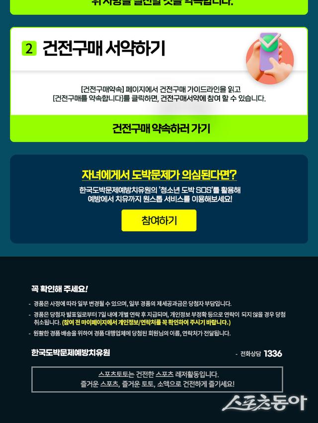 국민체육진흥공단에서 발행하는 체육진흥투표권 스포츠토토의 공식 인터넷 발매사이트 베트맨(betman.co.kr)이 청소년 보호와 불법도박 예방을 위한 ‘청소년 도박 예방 캠페인’을 3월 24일(월)부터 30일(일)까지 약 1주일간 진행한다.