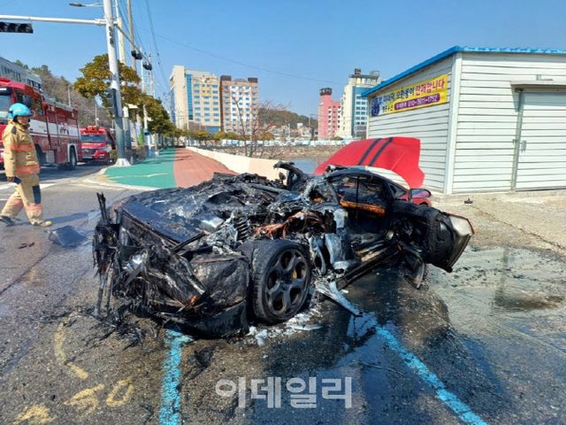 23일 전남 여수소방서에 따르면 전날 오후 1시 37분께 여수시 안산동 한 도로에서 주행 중이던 람보르기니 차량에서 불이 났다.