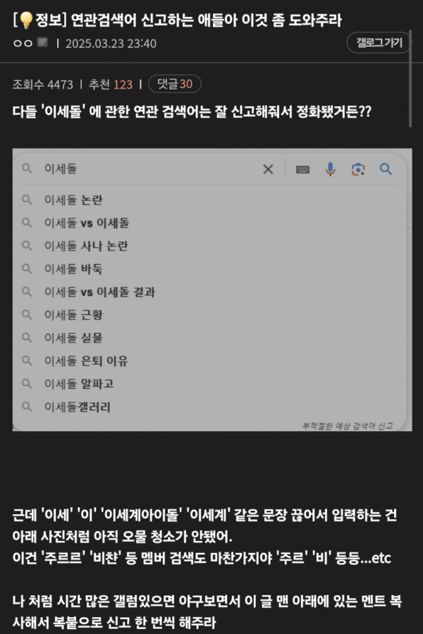 육수들이 구글에 신고 넣어서 연관검색어 클리너 돌리는 중