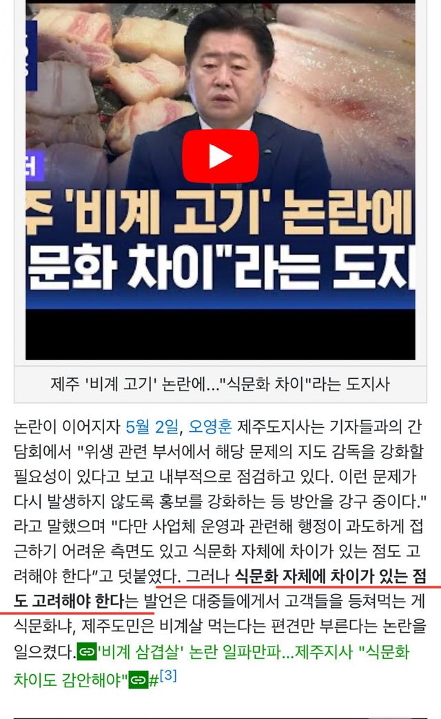 제주도지사가 식문화 차이가 존재하는거 같다는 발언으로