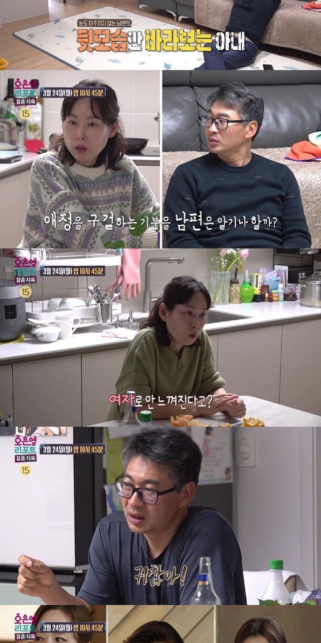 (엑스포츠뉴스 김현정 기자) 24일 오후 10시 45분에 방영하는 '오은영 리포트 – 결혼 지옥'에는 아내의 말이면 모든 게 귀찮은 남편과 그런 남편에게 사랑받고 싶은 아내, ‘체인지 부부’가 등장한다.