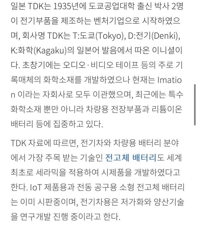 일본 기업 tdk를 모회사를 두고 있는 자회사