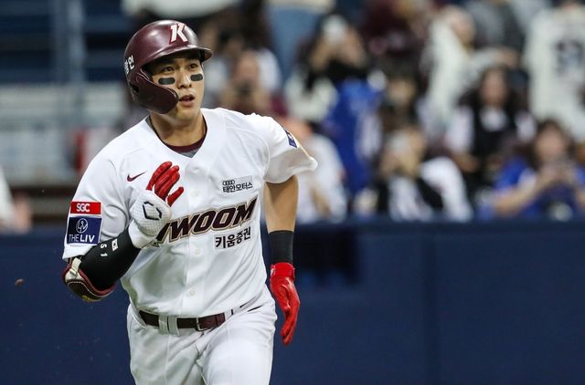 2023년 10월 10일 서울 구로구 고척스카이돔에서 열린 2023 KBO리그 삼성 라이온즈와 키움 히어로즈와의 경기에서 이정후(키움)가 8회말 1사 주자없는 상황에서 대타로 타석에 나서 유격수 앞 땅볼(아웃)을 치고 1루베이스로 향하고 있다. / 뉴스1