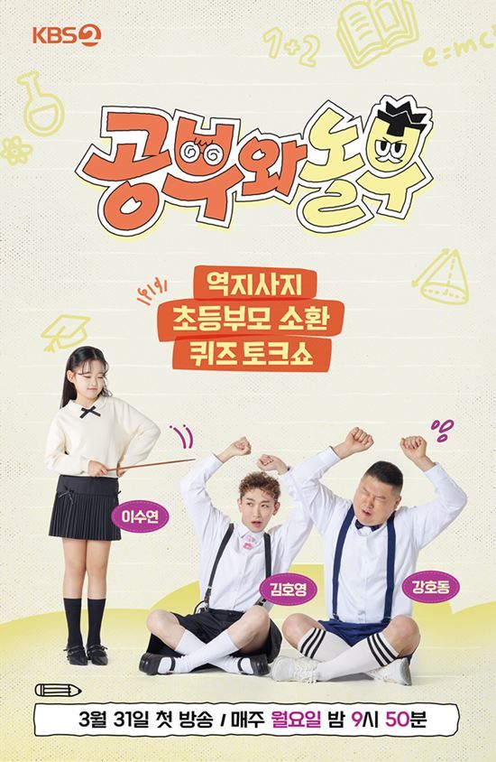 스타 부모들이 자녀의 초등 교과서 문제를 직접 풀어보는 ‘역지사지 초등부모 소환 퀴즈 토크쇼’인 ‘공부와 놀부’에 국민 MC 강호동, 만능 엔터테이너 김호영, 트로트 신동 이수연이 MC로 출격하며 각기 다른 매력으로 프로그램을 이끌 예정이다.