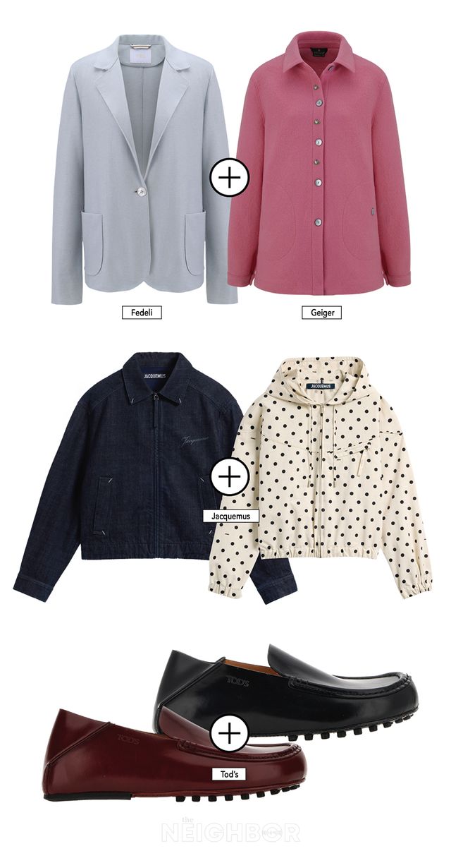 커플 아이템은 은은하게 맞추는 것이 포인트. 캐주얼한 스타일을 즐기는 커플이라면 자크뮈스의 도트 패턴이 사랑스러운 점퍼를 함께 매치해보면 어떨까? 모던한 느낌을 원한다면 은은한 컬러의 아이템을 맞춰 입는 것도 좋겠다. 토즈의 플랫슈즈인 고미노를 다른 컬러와 소재로 매치해보는 것도 아주 근사할 듯.