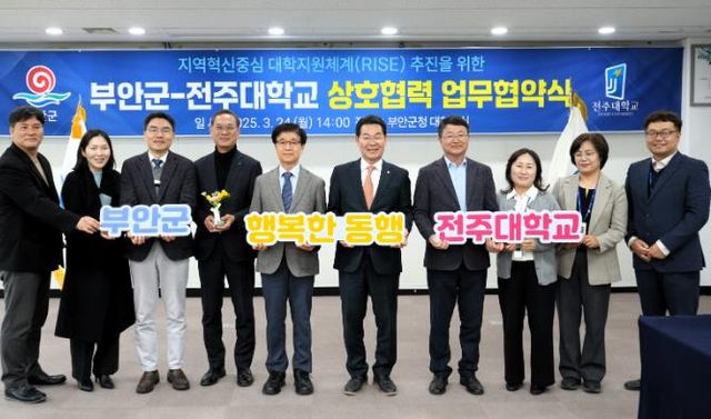 [파이낸셜경제=김영란 기자] 부안군과 전주대학교가 지역 혁신 중심 대학 지원체계(RISE ·Regional Innovation System & Education) 사업의 성공적인 추진을 위해 협력에 나섰다.