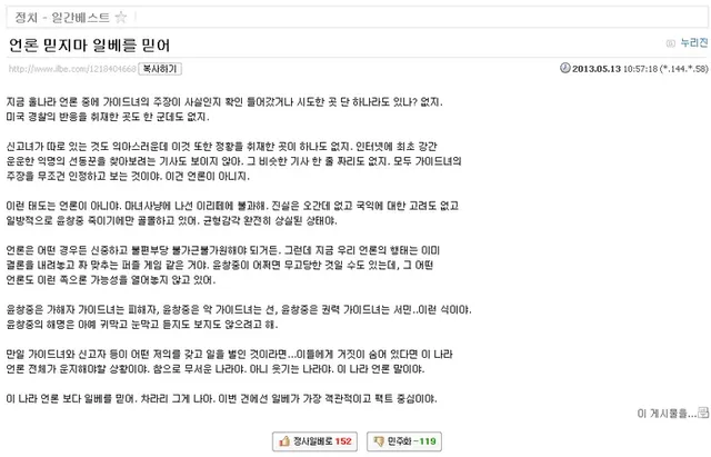 뭣보다 방송사 기자놈들이 '어느 커뮤니티'라며 커뮤글 퍼다나르는 중