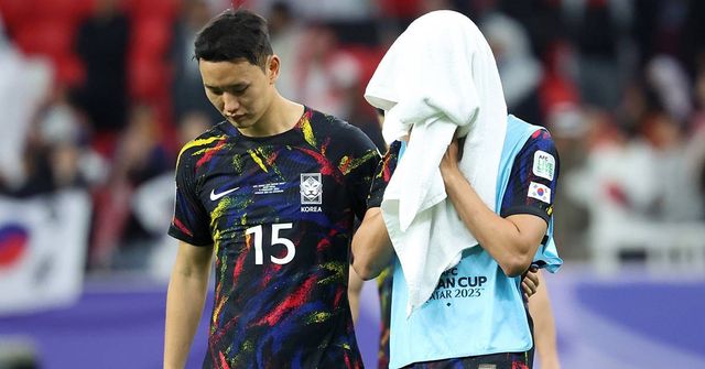 대한민국 정승현과 박용우가 2024년 2월 6일(현지시간) 카타르 알라이얀 아흐메드 빈 알리 스타디움에서 열린 2023 아시아축구연맹(AFC) 카타르 아시안컵 준결승 요르단과 대한민국의 경기에서 0-2로 패배하며 결승 진출이 좌절된 후 아쉬워하고 있다 / 뉴스1