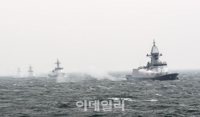 이들 함정은 일제히 흰 연기를 내뿜으며 함포 사격을 진행하면서 북한의 해상도발에 대한 강력한 응징 능력을 과시했다. 1.5m 높이의 파도와 싸우며 10노트 이상의 속력에서도 자동화 된 함포는 정교하게 목표수역으로 날아갔다. 함정들은 대함 실사격 훈련 뿐만 아니라 대잠수함·대공중 사격 등 적 도발 유형별 훈련을 이어갔다.