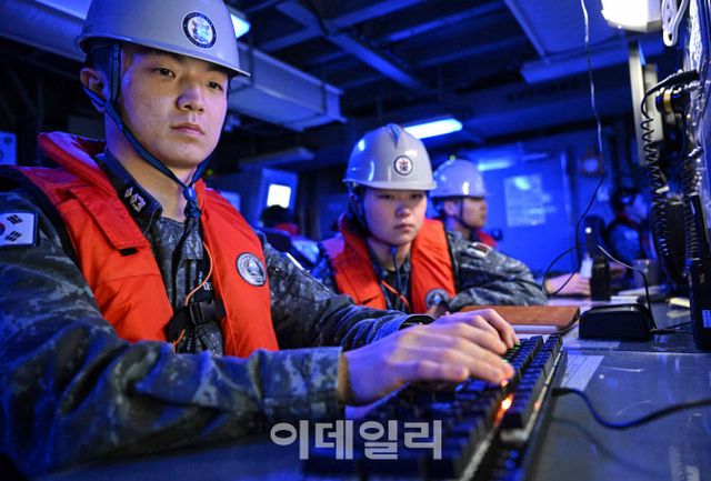 함교에 위치한 조타사의 구령과 함께 ‘대전함’이 기적을 울리며 함포를 쐈다. 구경 127㎜ 짜리 함포 5발이 발사될 때마다 함교 방탄유리가 흔들렸다. 사격으로 인한 충격이 몸으로 고스란히 전해졌다. 해상 기동과 실사격 훈련을 진행하는 대전함 승조원들의 바쁜 움직임 속에서 영해 수호의 결연한 의지가 읽혔다.