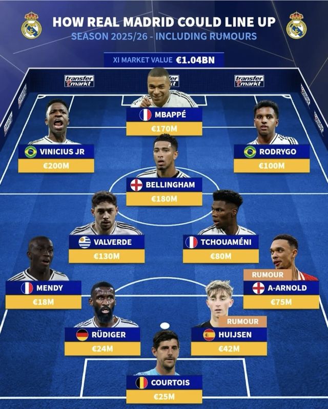 레알 마드리드의 2025~26시즌 예상 라인업이 나왔다. 더 강해진 모습이다.
