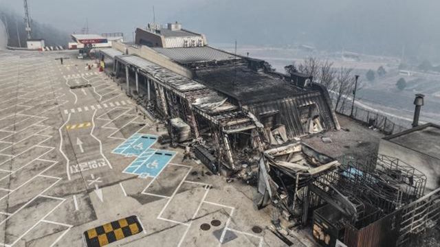 경북지역을 강타한 대형 산불로 고속도로 휴게소가 심각한 피해를 입었다.
