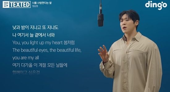 지난 26일 딩고 뮤직(dingo music) 공식 유튜브 채널에는 정승원의 신곡 '너를 사랑한다는 말' 텍스티드(TEXTED) 라이브 콘텐츠 영상이 공개됐다.