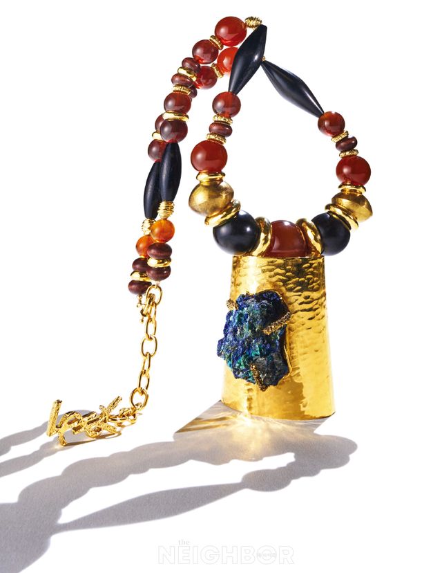 이번 시즌 액세서리 트렌드를 알고 싶다면 생로랑의 2025 S/S 컬렉션 주얼리를 눈여겨보자. 볼드한 크기의 다채로운 컬러 스톤이 돋보이는 네크리스, 커프가 가벼워진 봄날의 룩에 힘을 준다. 컬러 스톤과 골드 메탈 링을 교차로 엮은 네크리스는 대담한 매력을 강조하며, 텍스처가 돋보이는 메탈 소재에 큼직한 스톤을 장식한 커프는 남다른 존재감을 발휘한다. 탱크톱과 데님 룩에 캐주얼한 캔버스 재킷을 걸치고 네크리스를 악센트로 더하거나, 에스닉 무드의 드레스에 커프를 포인트로 매치하면 보헤미안 무드를 강조할 수 있다.