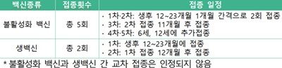 질병관리청은 국가예방접종을 통해 2012년 이후 출생자에게 일본뇌염 백신 접종을 지원하고 있다. 백신 종류에 따라 불활성화 백신은 총 5회, 생백신은 총 2회 접종이 필요하다.