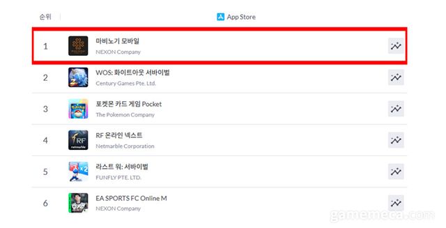 지난 27일 출시된 마비노기 모바일이 하루 뒤인 28일에 국내 애플 앱스토어 게임 매출 1위에 올랐다.