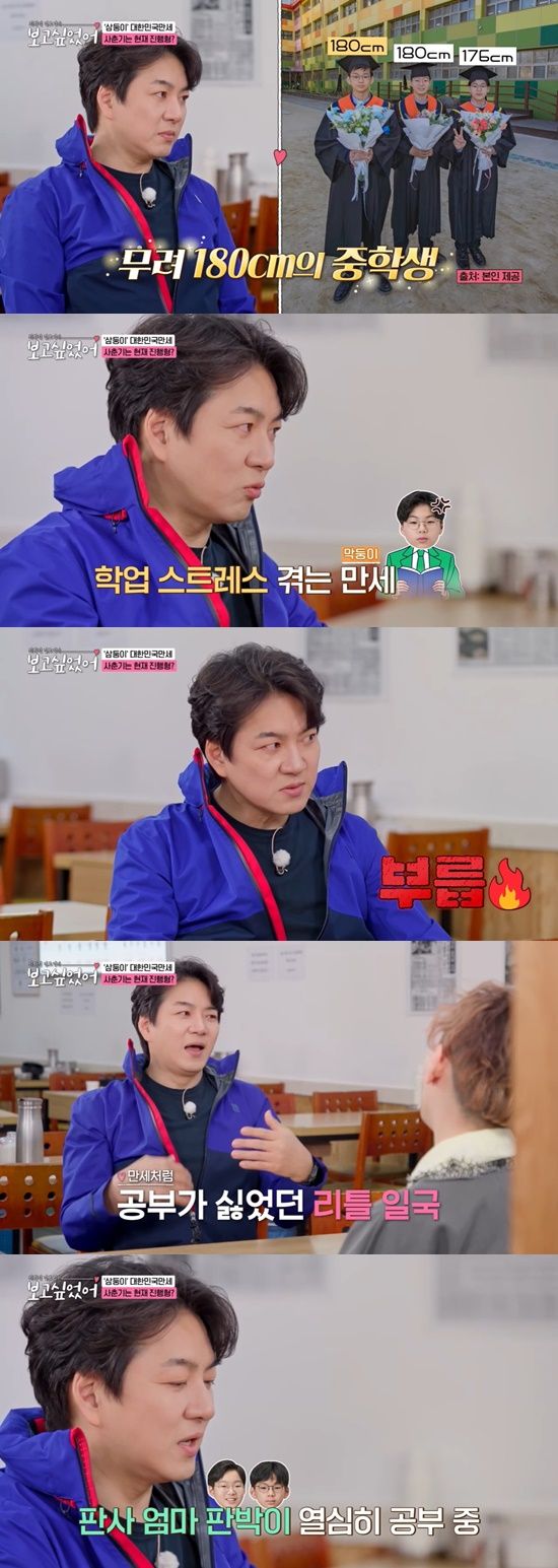 아이들이 이제 사춘기에 접어들 때가 되지 않았냐는 말에는 "이미 왔다. 만세가 공부에 대한 스트레스가 많다. 어제도 만세한테 '빨리 숙제해야지' 했더니 (나를 노려보더라)"며 "'좀 쉬었다 해'라고 했다"고 고백해 웃음을 줬다.