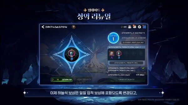 성역부터 성장 체계, 메인 UI 등에 걸친 대대적인 기존 콘텐츠 개선 작업도 이뤄진다. 성역의 ‘오르비스의 심장’은 주간 및 월간 접속·플레이 보상을 제공하는 형태로 변경되며, 월 1회 획득 가능한 보상으로는 최대 ‘5성 월광 영웅 소환권’, ‘최상위 등급 장비’, ‘머라고라’, ‘지식의 석판’ 등 고가치 보상으로 구성된다.