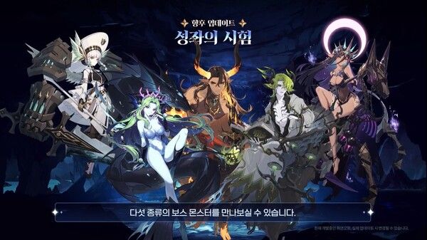 신규 콘텐츠로는 최상위 PvE 엔드 콘텐츠 ‘성좌의 시험’, 신규 PvP 모드 ‘루나틱 드래프트 모드’가 추가된다. 성좌의 시험은 악몽 아즈마칼리스 미궁보다 더욱 도전적인 시즌제 대규모 탐험 콘텐츠로, 별도의 전용 영웅 성장 시스템 ‘별자리 축복’ 시스템을 갖추고 있다.
