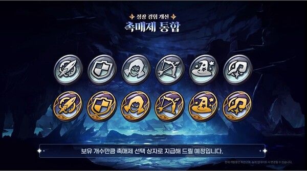 스킬, 각성 등 영웅 성장에 필수인 ‘촉매제’ 통합 소식도 전해졌다. 다양한 종류로 파편화된 촉매제를 총 6종의 ‘직업별’ 희귀 및 전설 촉매제로 통합하며, 업데이트 이전 보유 중이던 기존 촉매제는 개수만큼의 선택 상자로 변환된다.