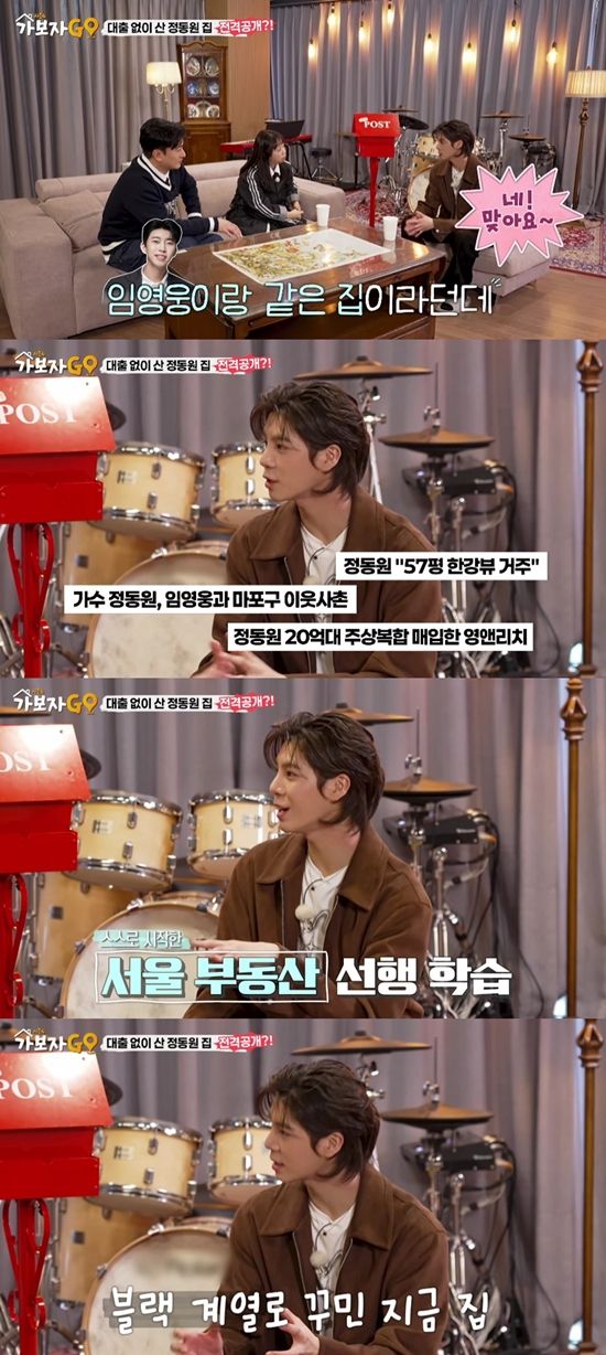 현재 서울 마포구 합정동에 거주한다는 정동원은 임영웅과 이웃이라며 "그 당시에 가격도 괜찮았고"라고 했다.