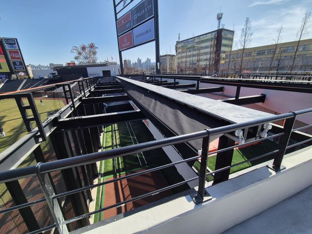 원정 팀의 쓰는 '복층 불펜'에 가벼운 우려가 따랐다. 계단이 가파르고, 층고가 낮은 데 따른 것이다. 복층 불펜은 상단이 열린 형태라 비와 타구를 피하기 쉽지 않아 보였다. 한화는 "비나 눈이 올 때를 대비해 전동식 어닝(차양)을 설치했다. 불펜을 오가는 팬들이 즐길 요소를 남기고자 했다"고 답했다. 그러나 29일에는 강풍 탓에 어닝이 처지는 일도 발생했다.