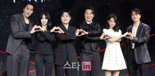 믿고 보는 배우들의 조합으로 기대를 모으고 있는 가운데 제작발표회 드레스코드가 눈길을 끌었다. 박해수, 이희준, 김성균, 이광수, 공승연이 모두 블랙&그레이 컬러의 착장으로 무대에 선 가운데 신민아는 홀로 화이트 컬러의 원피스를 입어 이목을 모았다.
