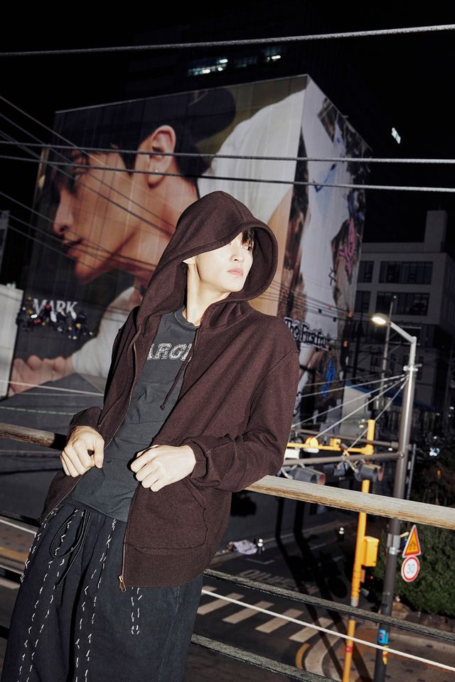 NCT 마크가 첫 솔로 앨범 발매 기념 대형 옥외 광고로 서울을 환히 빛내고 있다.