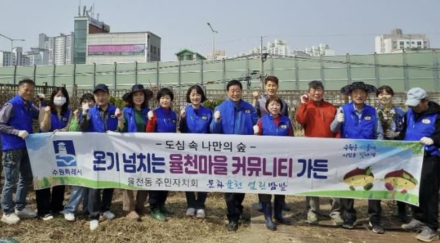 [와이뉴스] 수원시 장안구 율천동 주민자치회는 지난 31일, 율천동 행정복지센터 옥상에 조성한 ‘율천마을 커뮤니티 가든’ 정비작업을 실시했다.