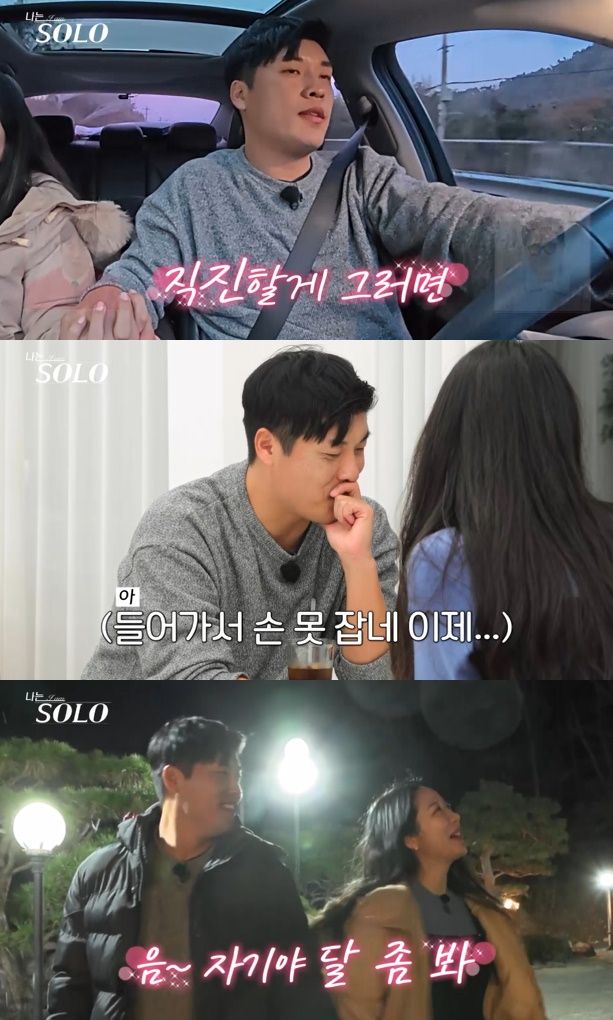 이를 들은 영철은 "하지 마. 배제 함부로 하는 거 아니야"라고 다급히 만류한다. 미묘한 기류 속, 두 사람은 '5G'급 속도로 가까워진다. 급기야 둘은 데이트 내내 손을 잡고 있던 손을 만지작거리면서 '초밀착 스킨십'을 감행한다.