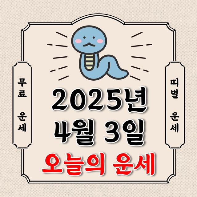 오늘의 운세 2025년 4월 3일 목요일 (음력 3월 6일 / 띠별 운세 / 생년월일 운세)에 대해 알아 보겠습니다.