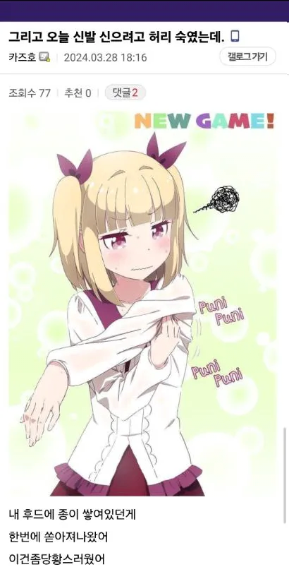 평소 카즈호는 힘든일이 있어도 대부분은 뻘글이나 유머글을 썻는데