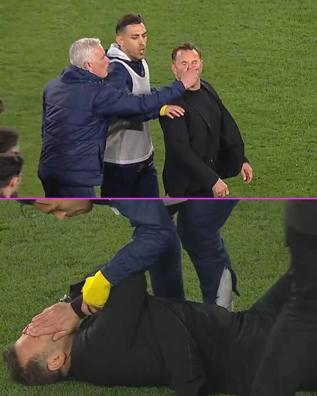 조제 모리뉴 페네르바체(튀르키예) 감독이 패배 뒤 상대 사령탑의 코를 잡아당기는 기행을 벌여 논란이 됐다.