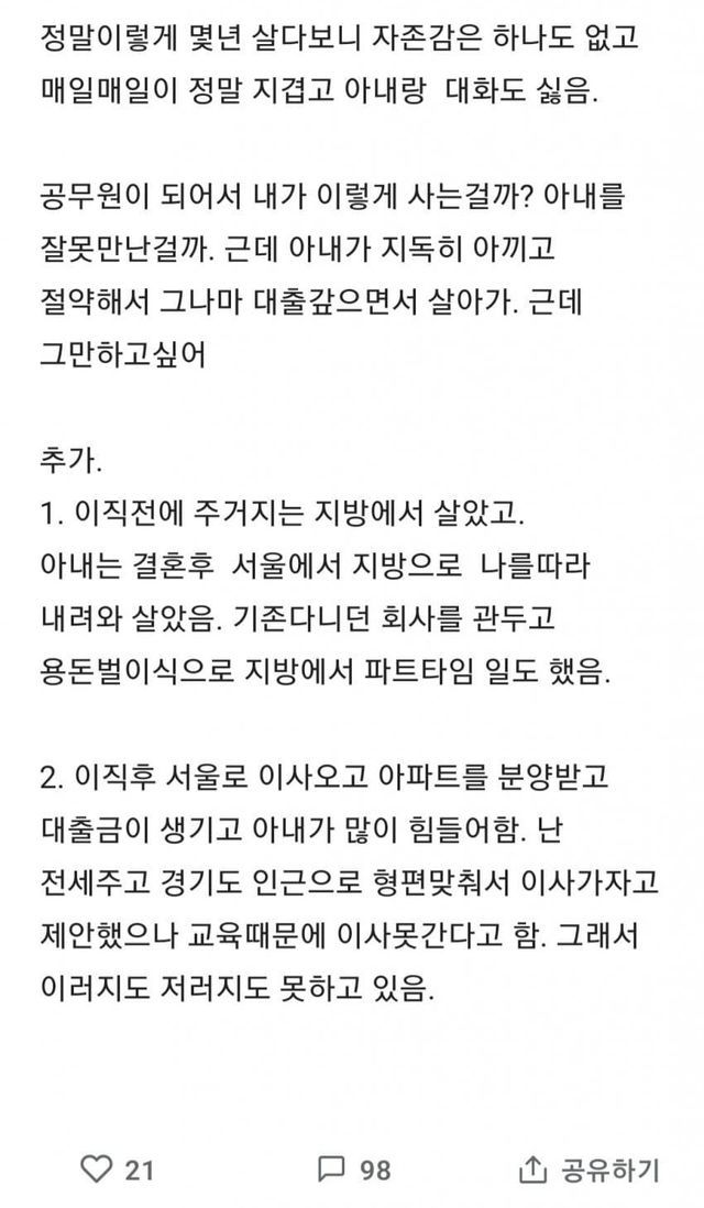 "부부끼리 합의하지 않고 이직한 글쓴이도 이해안됨"