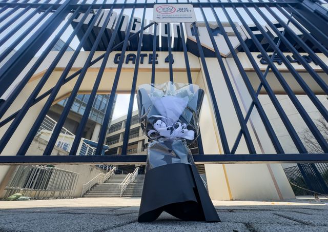 창원NC파크에 놓인 조화 (창원=연합뉴스) 김동민 기자 = 1일 오전 경남 창원시 마산회원구 창원NC파크 3루 내야 게이트 4번에 조화가 놓여 있다. 최근 창원NC파크에서 조형물 추락 사고가 발생해 인명피해가 발생했다. 2025.4.1 image@yna.co.kr/2025-04-01 11:12:22/ <저작권자 ⓒ 1980-2025 ㈜연합뉴스. 무단 전재 재배포 금지, ai 학습 및 활용 금지>