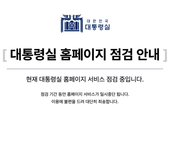 다만 대통령실 홈페이지의 반응은 초기에는 상대적으로 더뎠다. 한동안 윤 전 대통령의 사진과 함께 ‘대한민국 제20대 대통령 윤석열’이라는 소개 문구가 그대로 유지됐지만, 현재는 홈페이지 전체가 점검 중으로 전환됐다. ‘대통령실 홈페이지 서비스 점검 중입니다’라는 문구와 함께 홈페이지 접속 자체가 차단된 상태다.