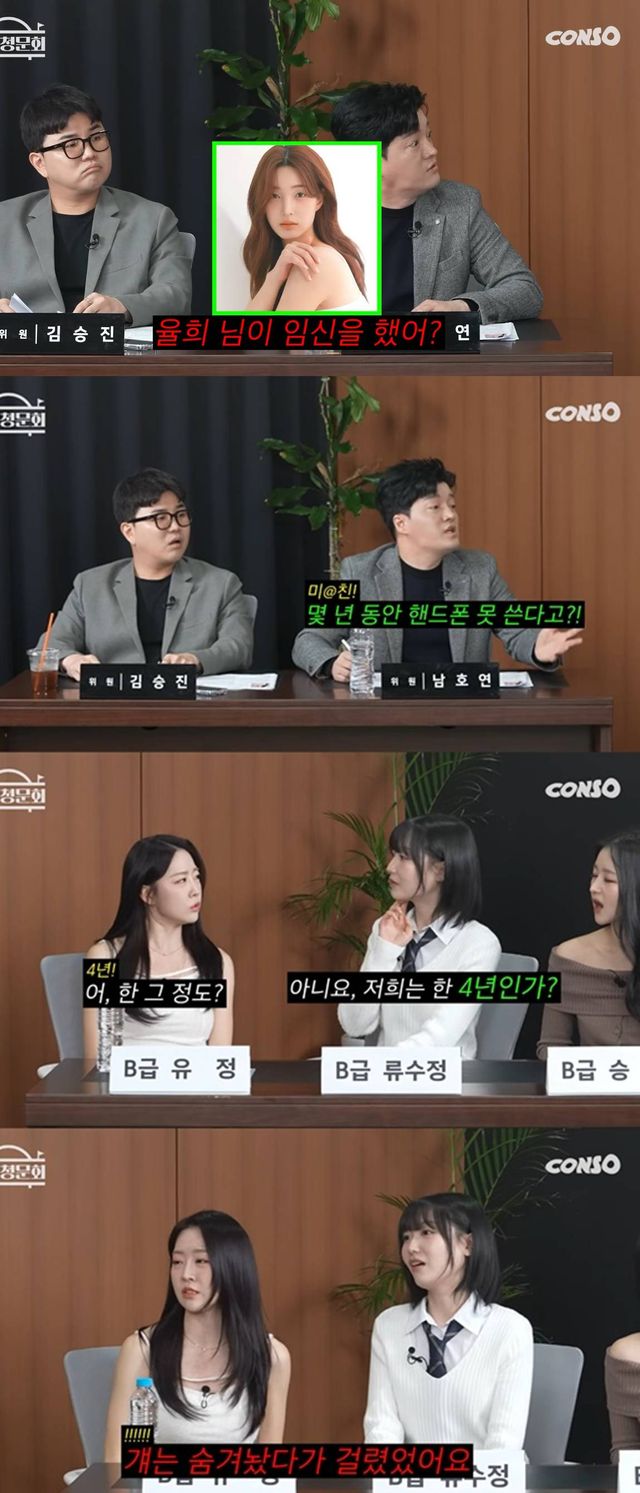 남호연은 "핸드폰을 못쓰게 했는데 어떻게 라붐에서 율희 님이 임신을 했냐"고 물었다. 유정은 "걔는 숨겨놓고 쓰다가 걸렸다"고 답해 눈길을 끌었다. 연애하지 말라는 조항은 없었으나 회사에서 관리가 엄격했다고 덧붙였다.