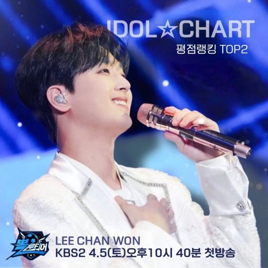 (엑스포츠뉴스 이정범 기자) 이찬원이 아이돌차트 평점 랭킹 2위를 차지했다.