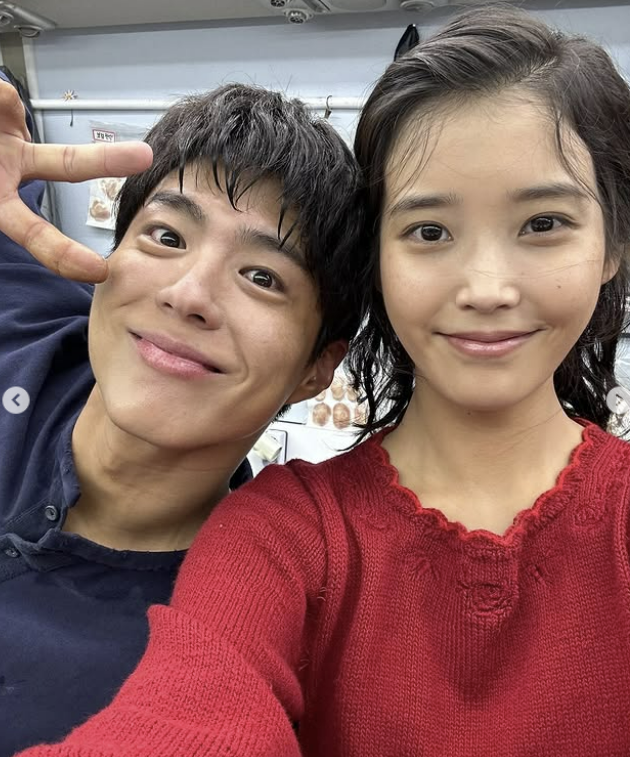 사진 속 아이유는 젊은 애순 역으로 호흡을 맞춘 관식 역 박보검과 다정하게 포즈를 취하고 있다. 두 사람은 유채꽃밭을 배경으로 분홍 원피스와 청록 셔츠를 입고 나란히 서있는가 하면 신난듯 아이유가 폴짝 뛰는 모습을 박보검이 카메라로 찍는 모습이 포착되기도 했다. 또 비에 젖은 분장을 하고 찍은 다정한 셀카도 눈길을 끌었다.