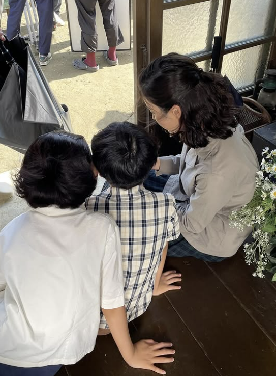 애순과 관식의 자녀들 금명, 은명, 동명을 연기한 아역들과의 훈훈한 장면도 담겼다. 아이유는 한명씩 다정한 시선으로 카메라에 담았다.