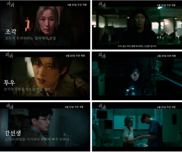 함께 공개된 ‘파과 킬러즈’ 소개 영상은 인물 하나하나의 서사는 물론, 다양한 관계성을 보여주며 눈길을 끈다. “잊지마. 우리 일은 악성 벌레 퇴치하는 신성한 일이야”라며 시작된 영상은 전설적인 킬러 ‘조각’의 방역에 대한 신념을 드러내며 군더더기 없는 액션과 함께 범접할 수 없는 존재감을 드러낸다. 한편, ‘투우’는 ‘조각’의 주변을 맴돌면서 잔혹하고 거친 방식으로 그를 도발하며 ‘조각’의 인생을 뒤흔들 존재로서 호기심을 불러일으킨다. ‘강선생’의 등장으로 ‘조각’과 ‘투우’의 갈등이 절정에 이르는 가운데, ‘조각’의 상처를 치료해 주며 쓸모없는 존재는 없음을 다시 알려주는 ‘강선생’의 모습은 ‘조각’의 어린 시절인 ‘손톱’을 구원해 준 ‘류’의 모습과 교차되어 관객들의 몰입을 최고조로 이끈다. 이처럼, 각기 다른 카리스마를 지닌 캐릭터들이 얽히며 빚어낸 입체적인 관계와 피할 수 없는 잔혹한 운명을 그린 ‘파과’는 숨 막히는 긴장감으로 스크린을 압도할 전망이다.